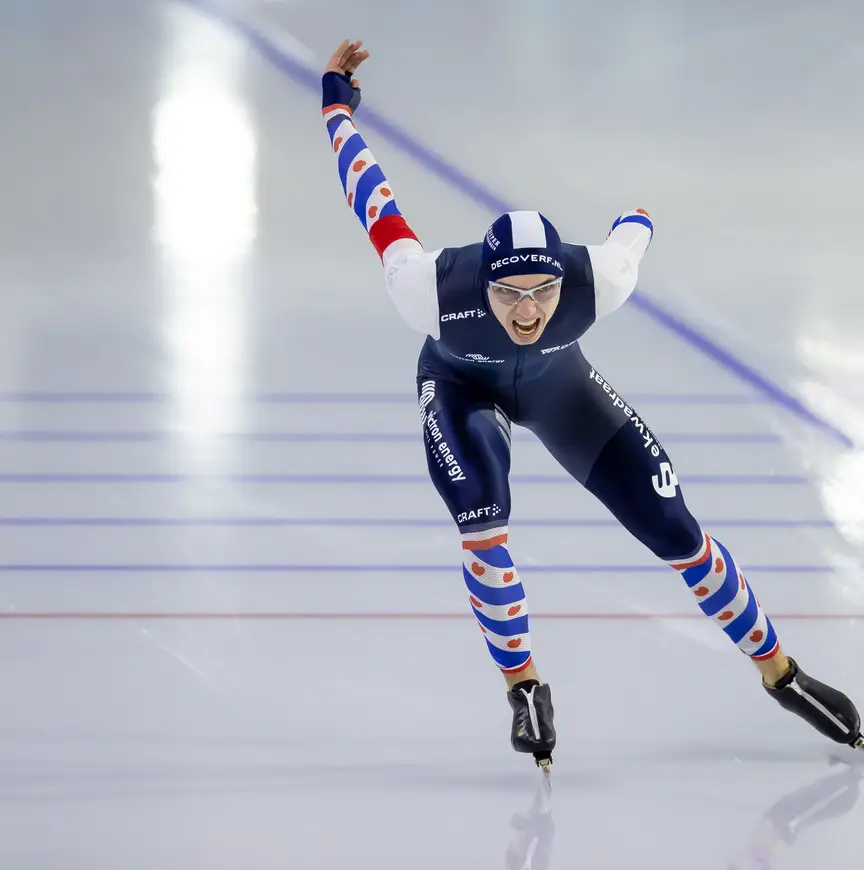 Het kan niet altijd kaviaar zijn. Dat geldt ook voor de 19-jarige Fries. “Het OKT was eigenlijk de eerste slechte wedstrijd van dit seizoen voor mij. Ik reed de 1.500 meter en had mijn snelste opening ooit. Ik wilde te graag, waardoor ik vergat technisch te blijven rijden en in de juiste houding te blijven zitten. Daar moet ik het van hebben. Ik was te hebberig. Dan maak je geen snelheid en kost het veel energie. Ik ging volledig op een hoop met twee seconden verval als resultaat. Voor mijn doen is dat veel. Die goede tijd van de Daikin NK Afstanden zat in mijn hoofd. Ik wilde het zo graag nog een keer rijden. Dan gaat het fout. Nu weet ik in ieder geval dat het dit weekend niet zo moet. Normaal gesproken kan ik me redelijk cool houden voor wedstrijden. Ik heb niet veel zenuwen. Ik doe mijn ding en trek me weinig aan van wat de rest doet. Daar ligt mijn kracht.”