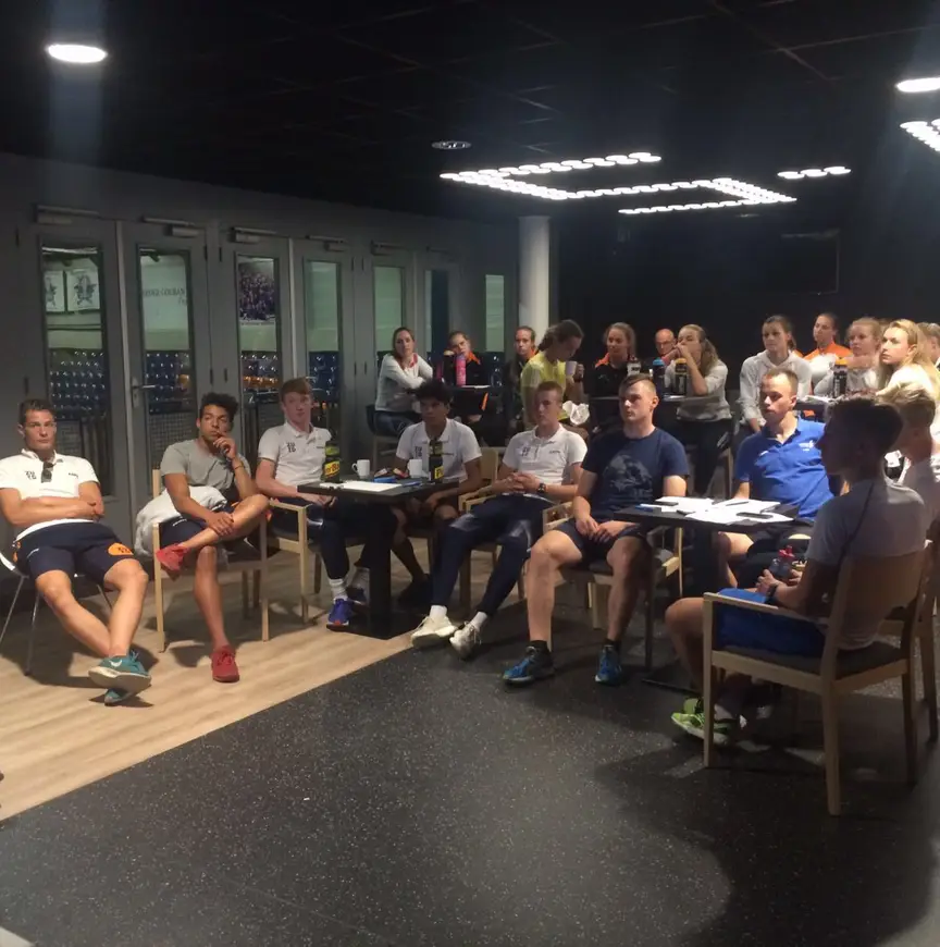Naast schaatstrainingen volgden alle rijders workshops timemanagement en de sportpsychologische vaardigheid visualiseren. Deze werden aangeboden door twee experts in samenwerking met het Centrum voor Topsport & Onderwijs (CTO) in Heerenveen. "Visualiseren vonden de schaatsers en coaches heel interessant. Door actuele voorbeelden en verschillende kleine oefeningen kwam het echt tot leven. De workshop timemanagement bevatte wat drogere stof, maar dit leidde wel tot bewustwording die belangrijk is voor het plannen van hun school en sport." Deze woensdag is er nog een workshop social media. Is het niet wat vroeg voor mediatraining? "Ze leren hier nog niet hoe ze een interview moeten geven," legt Wiersma uit. "Ik verwacht meer de do’s en don'ts over het gebruik van social media en welke effecten het gebruik kan hebben. Tegenwoordig is iedereen op social media te vinden en kan het aantal 'volgers' ineens flink toenemen zodra deze junioren deelnemen aan een seniorenwedstrijd."