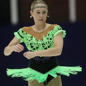 De derde plaats was voor de geblesseerde Michelle Couwenberg. Technisch ging er het een en ander mis, maar de kür die ze neerzette was een prachtig programma.