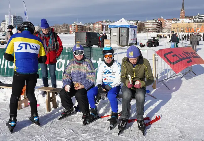 “Deze schaatswedstrijden zijn voor ons echt een eyeopener. Nu zien we hoe bijzonder het ijs is. Soms ben je blind voor je eigen omgeving. We kunnen er meer gebruik van maken. De Zweden moeten de schoonheid van het ijs en het schaatsen inzien.” Wat zes edities geleden begon als een wedstrijdenreeks op natuurijs, is inmiddels uitgegroeid tot een festival, met onder andere een hardloopmarathon op het ijs, een wereldrecordpoging balanceren tussen twee luchtballonnen in en muzikaal vermaak.