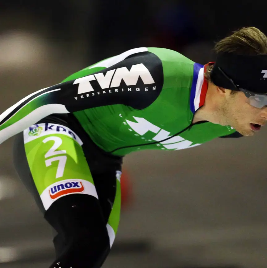 Met het vertrouwde nummer 27 op het been, maar nu niet in het groen van BAM, maar dat van zijn nieuwe werkgever. "Dat ik in Deventer zou rijden hing er helemaal vanaf of ik tijdens het NK in Thialf zou starten op de tien kilometer.' Lachend: 'In feite was het dus niet volgens plan, maar we hebben vrijdag na de vijf kilometer wel meteen besloten dat ik zou rijden."