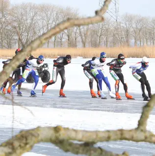 Dat nam niet weg dat er wel een koers op het ijs werd getoverd die de moeite meer dan waard was. Vanaf het begin ging de beuk erin op het vijf kilometer lange parcours, waar het peloton direct na de start lang de wind op kop had, om daarna in vliegende vaart met wind in de rug weer terug te keren.