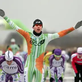 Even verderop stond Gary Hekman uit te hijgen. Balend. De grote man uit Gramsbergen leek de winst te gaan pakken, en dat leverde een scenario op dat deed denken aan de manier waarop Henk Angenent ooit op het Uitgeestermeer op de streep de zege ontfutselde aan de al juichende Bert Verduin. In dit geval was het alleen niet Hekman die al juichte, maar zijn achter hem rijdende ploeggenoten, Ingmar Berga voorop. Te vroeg, zo werd al snel duidelijk.
