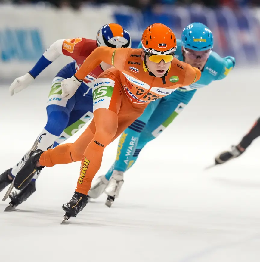 Met nog twee Cup-wedstrijden in Amsterdam en Leeuwarden te gaan is de voorsprong van Visser gigantisch: 102,8 punten om precies te zijn. “Niet normaal, bizar, hè. Acht overwinningen, dit is echt een droomseizoen.” De buit is daarmee binnen voor Visser, maar tijd om te rusten is er (nog) niet. Ook na acht kunstijsoverwinningen en een GP-zege in Oostenrijk is Visser onveranderd gretig om zijn seizoen nog meer glans te geven. “Ik ga altijd voor de winst, maar doe er vooral alles aan om niet te verliezen. Er is niks zo mooi als winnen, dat is zó verslavend. In zo’n finale met de beste sprinters, dan wil ik er gewoon bovenuit stijgen.”