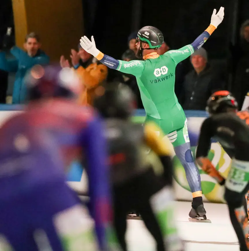 "Het was wel zenuwachtig zonder teamgenoten, maar het lukte en dat is het mooiste wat er is", glundert Visser met de bloemen in zijn hand. In de laatste ronde zat hij nog achter Chiel Smit en twijfelde te lang of hij er omheen zou gaan. "Ik bleef zitten en zag Ruud hard langs rijden. Maar ik heb best veel acceleratievermogen vanuit het langebaanschaatsen dus ik had net genoeg over om in het eindsprint te winnen."