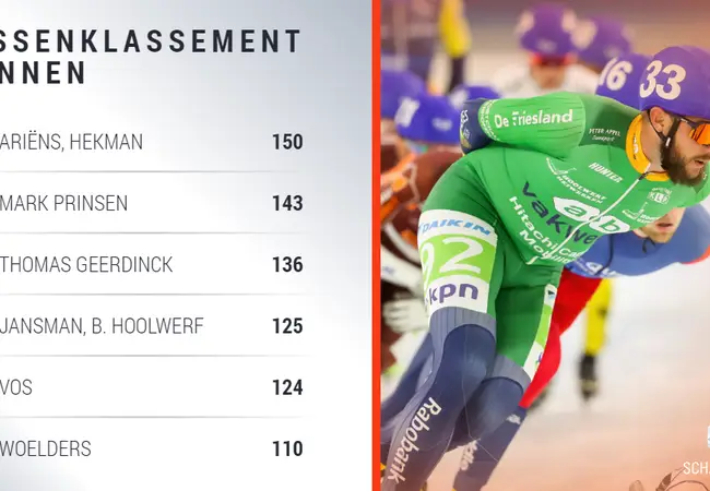 In het klassement bij de vrouwen gaat Schulting aan de leiding. De shorttrackster deed aan beide wedstrijden mee en veroverde daarbij veel punten. Chantal Hendriks volgt op enige afstand en de winnares van vorige week Esther Kiel staat vooralsnog derde. Bij de mannen gaan Hekman en Crispijn Ariëns gezamenlijk aan de leiding met 150 punten. Aangezien zowel de mannen van Royal A-ware als die van Jumbo-Visma er dit keer niet bij waren, zit het klassement dicht bij elkaar. Mark Prinsen staat namens OR Quest Bouw & Techniek tweede met 143 punten, voor Thomas Geerdinck (136), Bart Hoolwerf en Kars Jansman (beiden 125).