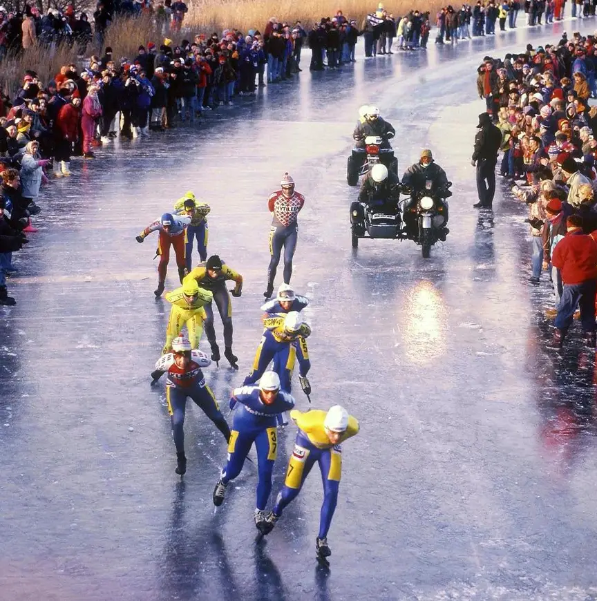 “Het wordt meer (be)geleid, maar uiteindelijk moet je afrekenen met onverwachte elementen. Als een wielrenner lek rijdt op een racefiets krijgt-ie binnen tien seconden een nieuw wiel. Rijd je je schaats krom, dan kun je ’m nog uittrekken en proberen recht te buigen. Anders ben je klaar. En in de noordhoek van Friesland kun je wel verzorgers hebben, maar als er geen auto in de buurt van het ijs kan komen…., wat dan? Degene met de sterkste kop, schaatskwaliteiten en die klaar is, wint.”