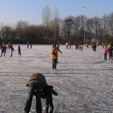 De natuurijsbaan in Rijsenhout ligt beschut in de luwte van bomen en het dorp. Bestuurslid PR Peter van der Vlugt: "Bij oostenwind, die er meestal is in natuurijswinters, is dat gunstig. Ons rechthoekige terrein zetten we eind november/begin december onder water en dan ligt het als het ware klaar om dicht te vriezen."