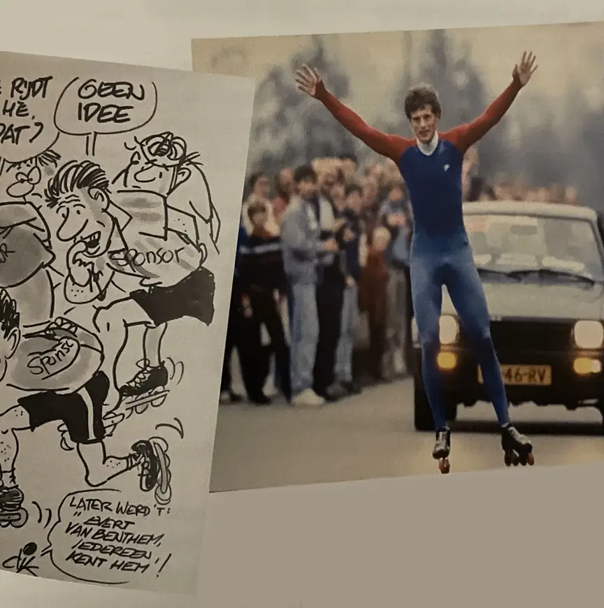 Er kwamen in die tijd nieuwe skeelers op de markt. Ik kan me herinneren dat we een handelsman hadden, genaamd Jan Postma. Hij zat in de grammofoonplaten en hij verkocht skeelers: Tri Skates (een skeeler met drie wielen). Deze begon hij uit te delen aan de top van de marathon en aan Hilbert van der Duim en consorten. Hij zei: ‘We gaan wedstrijden organiseren.’