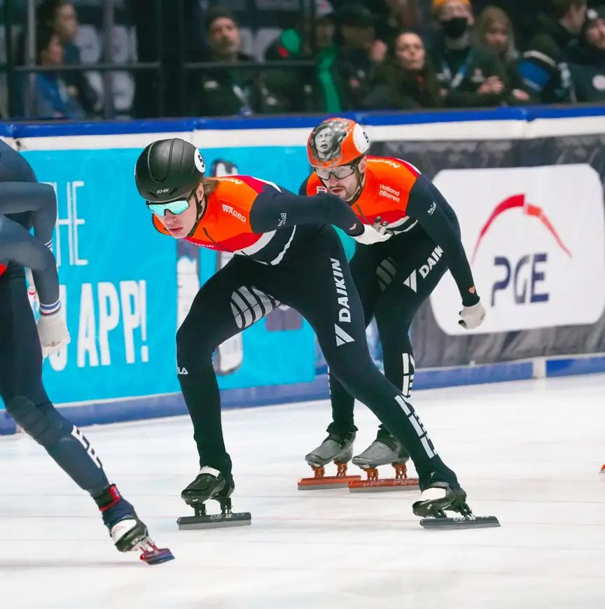 Het ritme heeft-ie te pakken, bekroond met een voor zijn doen foutloze dag in de kwalificaties. Tweede in de kwartfinale op de 1500 meter, als tweede in zijn heat door op de 1000, en als lid van de relayploeg moeiteloos geplaatst voor halve finales, wederom met een tweede stek.