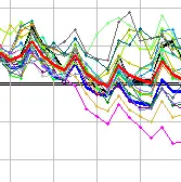 Bijschrift: We zien hier de temperatuurgrafiek tot 10 februari aanstaande waarbij het opvalt temidden van het soms wat chaotisch verlopende lijnenspel, dat de trend duidelijk dalend is. We zien ook enkele 'diepvrieslijntjes' op het einde. Een lichte spanning doemt geleidelijk op bij de schaatsliefhebber.