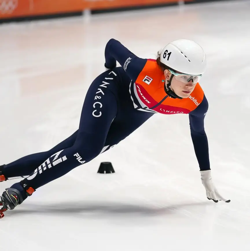 Poutsma: "Na de medailles is mijn telefoon volgestroomd met berichtjes. Het is heel leuk om te zien dat mensen die ik nog ken van vroeger, familie en vrienden allemaal meekijken en meeleven. Het voelt toch alsof er mensen om je heen zitten, maar dan wat verder weg. Aan de buitenkant van Sportboulevard Dordrecht is al acht jaar een foto van mij als jonge shorttrackster te zien. Die wordt binnenkort wel weggehaald. Dit weekend heb ik er zelf nog een foto meegemaakt. Voordat ik naar Frankrijk ging, heb ik veel getraind in Dordrecht onder leiding van Benny Bruggemans. Toen ben ik uitgekozen om hier te hangen. Elke keer als ik hier ben en die foto zie, denk ik: hier ben ik vroeger begonnen. Het voelt nog iets meer als thuiskomen. Dit WK is al in eigen land, maar ook nog hier in Dordrecht waar ik voor het eerst hard ben gaan trainen in een selectie maakt het extra leuk."