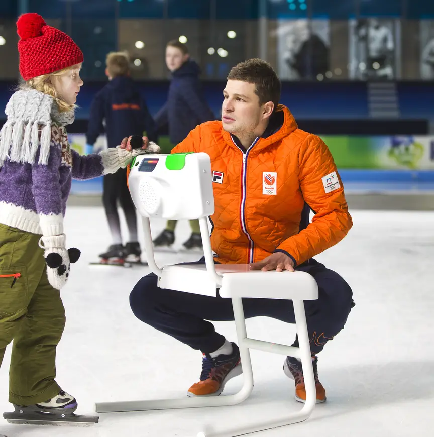 Nederland is een echt schaatsland. Iedereen doet het, we verlangen elke winter naar natuurijs. Voor de meesten is het op dezelfde manier begonnen: achter een stoel met vallen en opstaan op een bevroren slootje in de buurt of op de lokale kunstijsbaan, als onderdeel van de opvoeding. KPN besloot de hightech stoel te laten ontwikkelen mede om de allerjongsten te leren schaatsen.