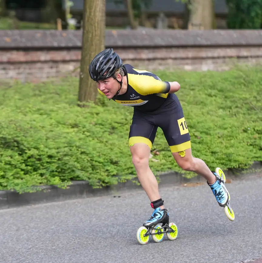 Berkhout dook vorig jaar weer op in de B-divisie van de marathons nadat zijn interesse voor de sport in de seizoenen daarvoor onder het nulpunt was gezakt. “Het begon eigenlijk in de coronaperiode. Ik had het jaar ervoor een prima seizoen gedraaid op skeelers, alleen werd ik niet geselecteerd voor het EK. Tot dat moment reed ik ook bij de Europese wedstrijden heel goed, maar in de voorbereiding op het nieuwe seizoen stak corona ineens de kop op. Toen was ik er wel een beetje klaar mee.”