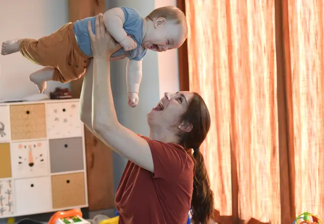 "Dat bevalt heel goed, ik kan me niet eens meer indenken hoe het was zonder kind. Ik had er ook echt een wens voor, dus als het dan lukt en zo uitpakt, mogen we alleen maar heel erg in onze handjes knijpen. Aaron is een vrolijk mannetje en is heel actief, hij vindt het alleen niet zo leuk om te slapen. Gelukkig begint hij nu wat langer door te slapen, waardoor ik zelf ook wat fitter begin te worden."