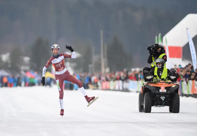 Ondanks zijn speciale band met het publiek was Hoogeveen misschien wel op zijn best zónder mensen langs de kant. De meeste overwinningen boekte hij op het natuurijs in Zweden. Alleen met het ijs en de wind in een gevecht met zichzelf en de elementen. Daar kon hij een jaar op wachten, om op dat moment boven zichzelf uit te stijgen. Zoals op die ene dag een jaar geleden op de Weissensee. Zijn laatste kunstje werd gevierd zoals voetballers een doelpunt vieren: allemaal op een hoop. Zoals altijd stond 'de lange adem' op om weer door te gaan, maar de koers was en is nu voorbij.