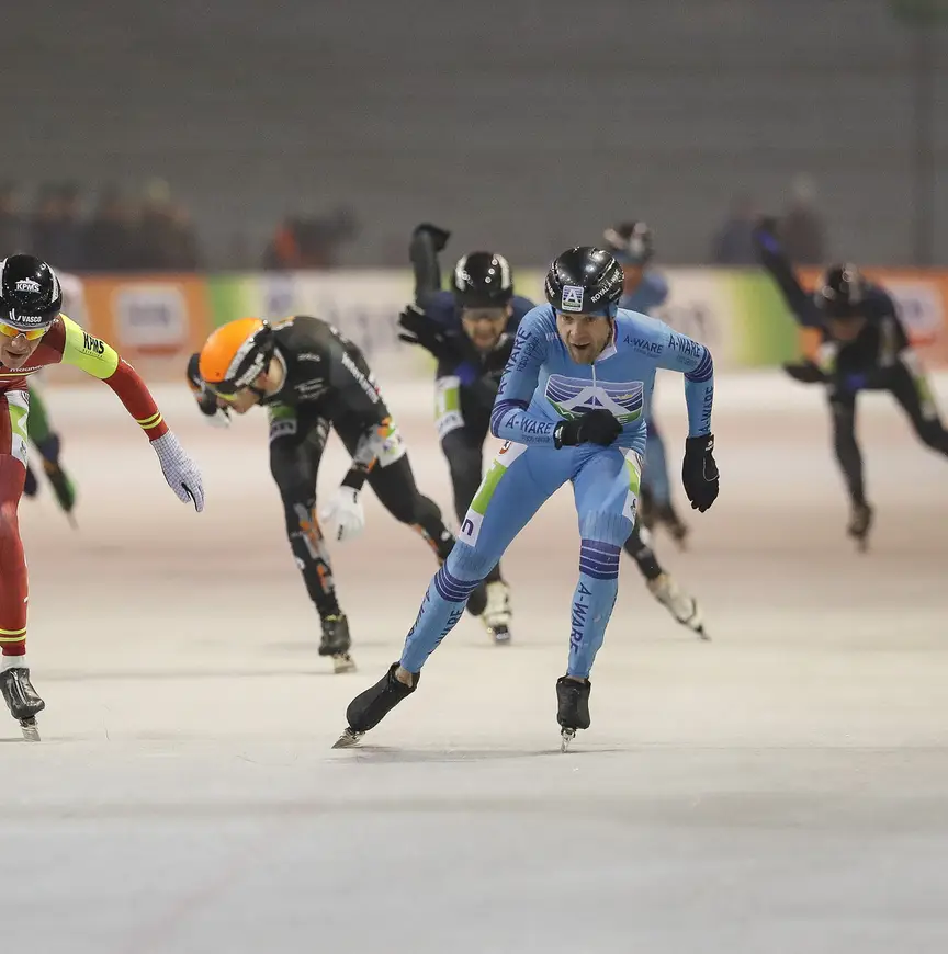 Hekman: "De massastart gaat nog harder en het ijs is veel mooier op de binnenbaan. Je rijdt harder en de druk op de benen is heel anders. Die druk kan je heel moeilijk trainen. Daardoor is de kans op een valpartij veel groter."