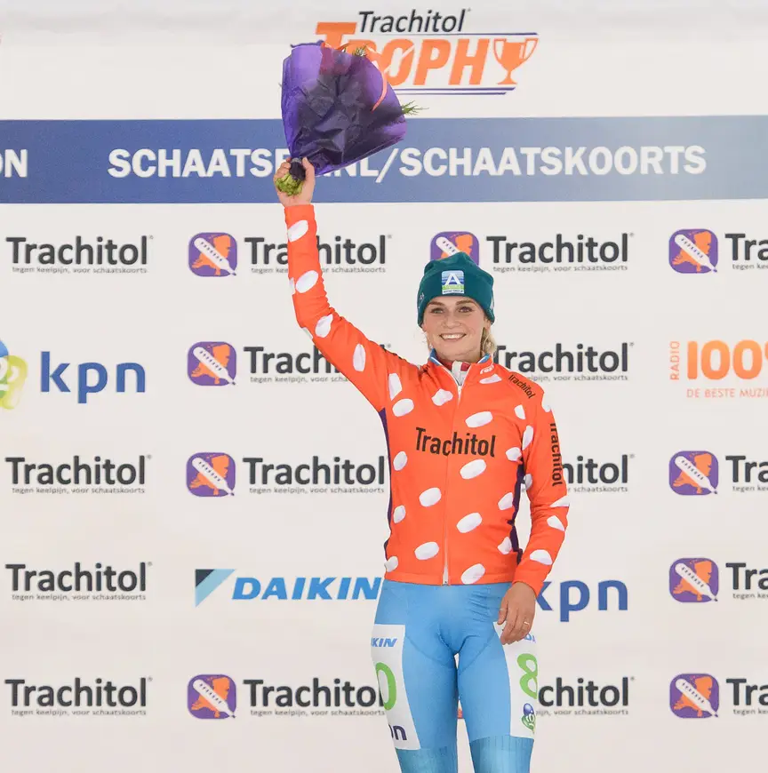 Tijdens de Trachitol Trophy wordt de afstand die de schaatsers afleggen tijdens de vier wedstrijden steeds iets langer. De dames begonnen donderdagavond daarom met een koers over zestig ronden, twintig minder dan ze gewend zijn van de KPN Marathon Cup. "Maar dat verschil is niet zo groot voor mij hoor", vertelt de winnares na afloop. "Het grootste verschil is dat ik nu ook voor de tussensprints ga, en verder dus minder aanvallend rijd in de wedstrijd."