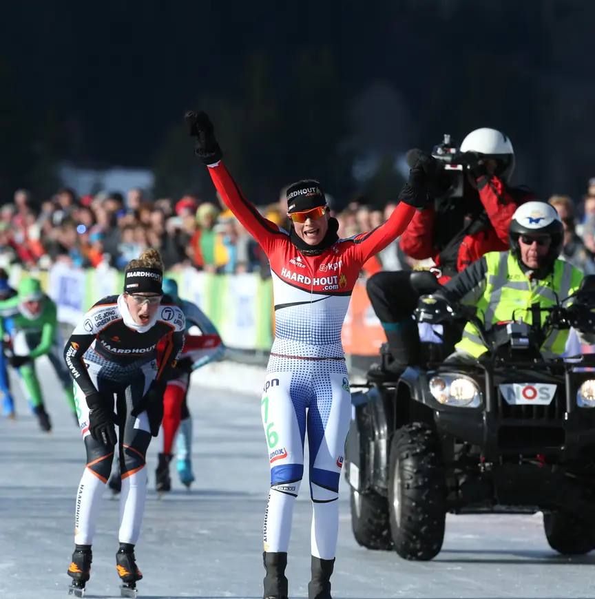 Afscheid of niet, Mariska Huisman deed op de Weissensee waar ze al jaren goed in is. Ze reed en streed op de manier zoals iedereen binnen en buiten het marathonpeloton haar kent. Huisman was sterk en alert en liet zien als geen ander uit de voeten te kunnen op natuurijs. Niet voor niets verdiende ze op het Oostenrijkse bergmeer het predikaat ‘koningin van de Weissensee’.