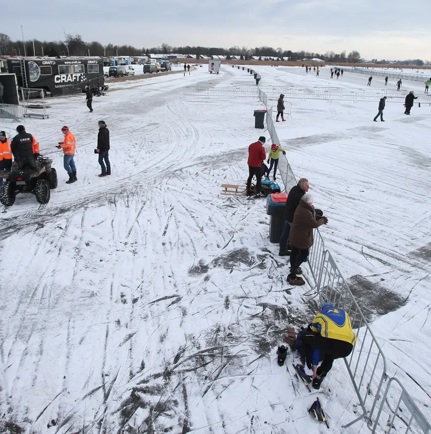 Publiek is welkom in Elburg om de marathoncracks 20 ronden van 5 kilometer te zien glijden, maar de organisatie laat de toeschouwers niet toe op het ijs. "Het parcours is helemaal afgezet met hekken, dus daar kan niemand op. We richten het zo in, dat het publiek vanaf de wal kan toekijken.''