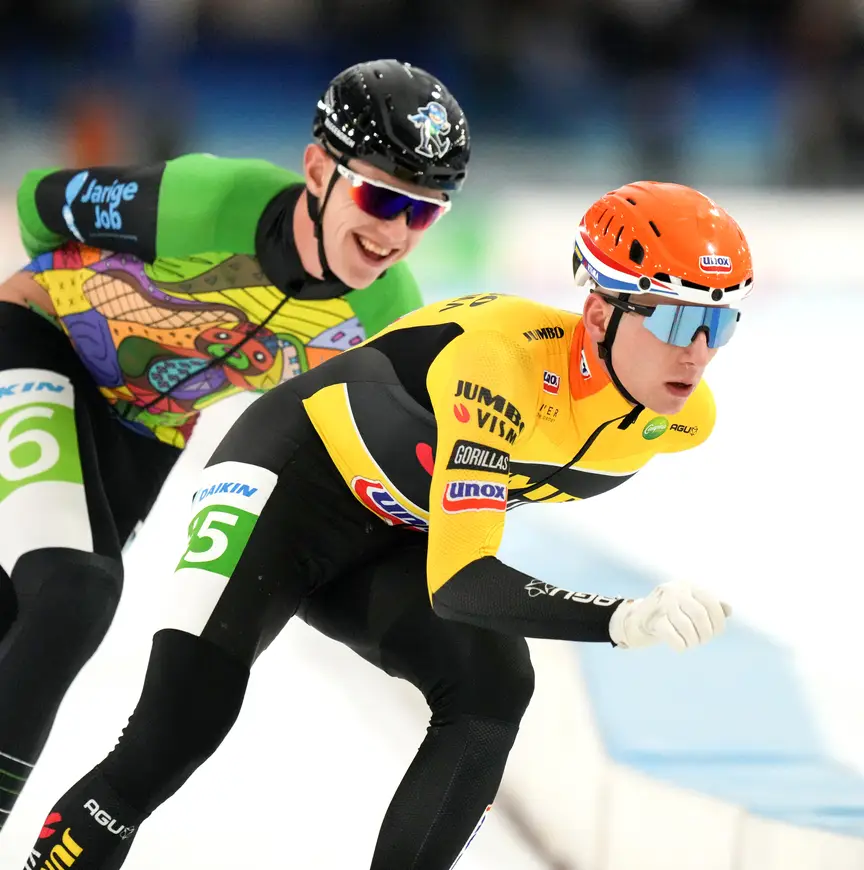 Anderhalf week geleden keerden de twee marathonschaatsers terug uit Zweden. Den Hertog had de vierde Grand Prix op natuurijs gewonnen, Visser de vijfde. Beiden lijken in vorm voor het seizoenstoetje in Leeuwarden. Vooral Visser gooide de afgelopen weken hoge ogen, hij pakte op kunstijs drie overwinningen op rij en veroverde in de voorlaatste Marathon Cup het leiderspak, ten koste van Den Hertog.