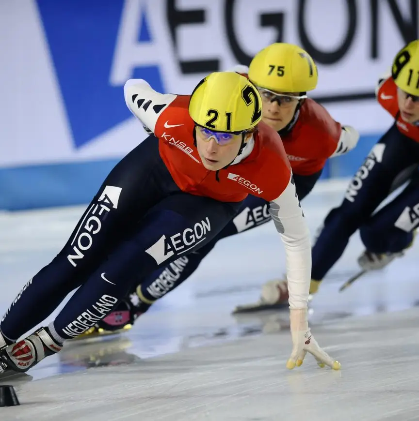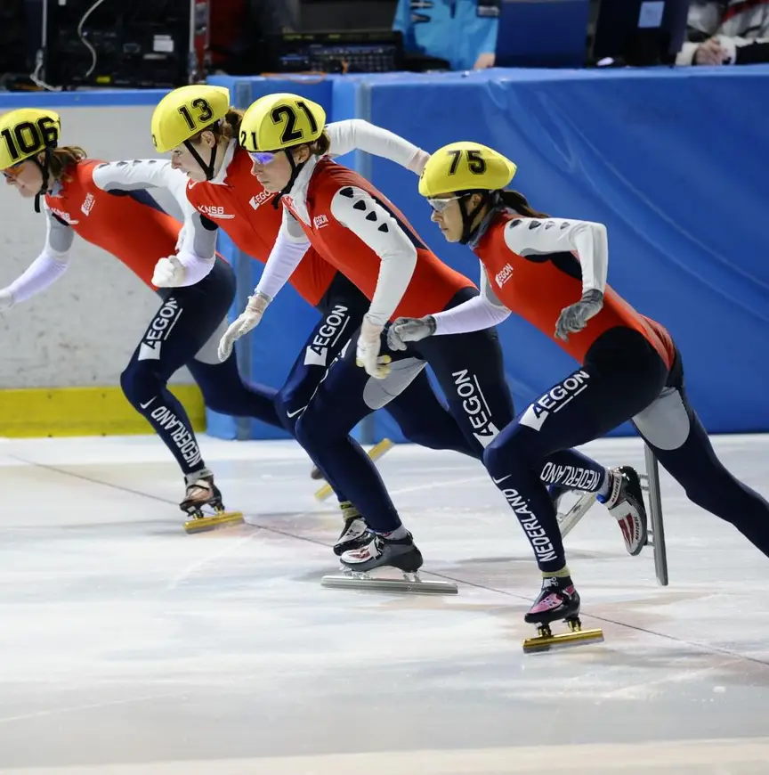 Het was toepasselijk voor het grote shorttracktalent, dat ze al goud veroverde op de openingsdag van het toernooi. In Wiegers zagen de coaches en trainers het wel zitten. Wat goed was, kwam vliegensvlug. Amper dertien mocht ze mee naar de Scandinavian Cup; de jongste van het hele stel kwalificeerde zich als enige voor de drie kilometer. “Dat was de voorbode dat ik al vroeg redelijk kon meerijden op niveau. Toen ik veertien was, reed ik m’n eerste WK bij de senioren. Of mijn leven om shorttrack draaide in die periode? Hmm…, eigenlijk wel, ja. Ik bedoel: als je jong en enthousiast bent, en je hebt je ouders mee die je overal naartoe rijden, drie keer in de week naar Den Haag als het nodig was, en naar alle buitenlandse wedstrijden, dan word je vanzelf enthousiast.
