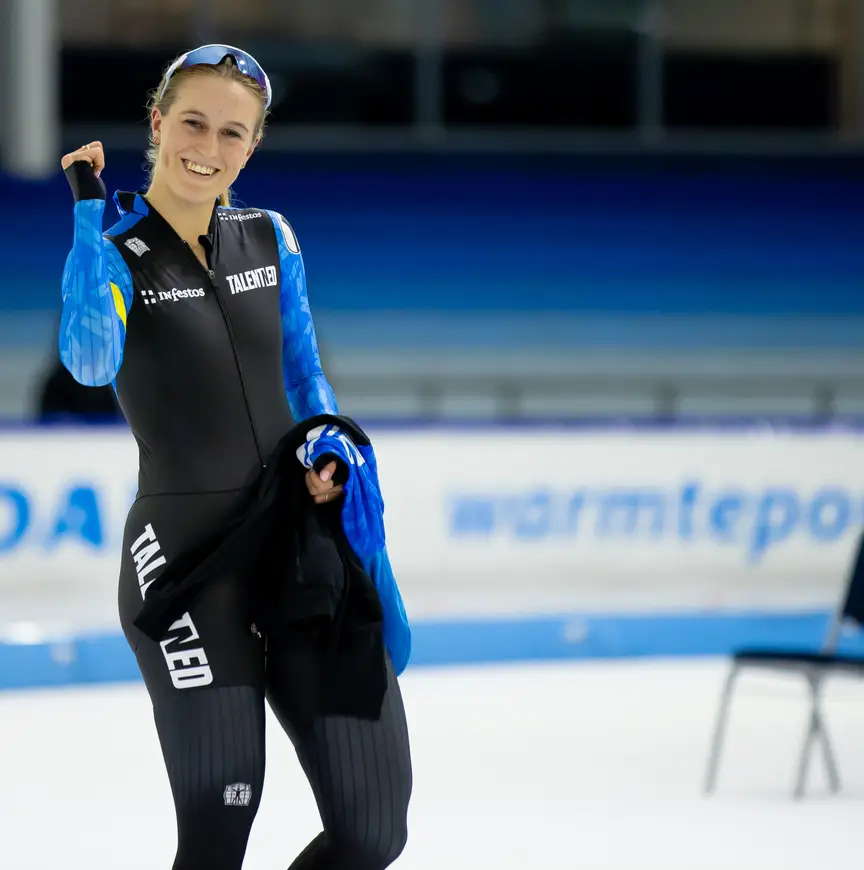 Sprinter of stayer, dat is de vraag voor Veen, die het liefst nog niet wil kiezen. “Ik dacht altijd dat de 1000 en 1500 meter mijn beste afstanden waren. Maar doordat ik nu zo hard een 3000 meter rijd, weet ik dat niet meer. Alles gaat nu goed lijkt het wel. Gelukkig hoef ik nog niet te kiezen. Ik vind dat je als junior vooral moet laten zien dat je een diverse schaatser bent." Dat is wel gelukt. Wordt Meike dan de nieuwe Jutta of de nieuwe Sanne? “Dat moeten we nog maar zien!”
