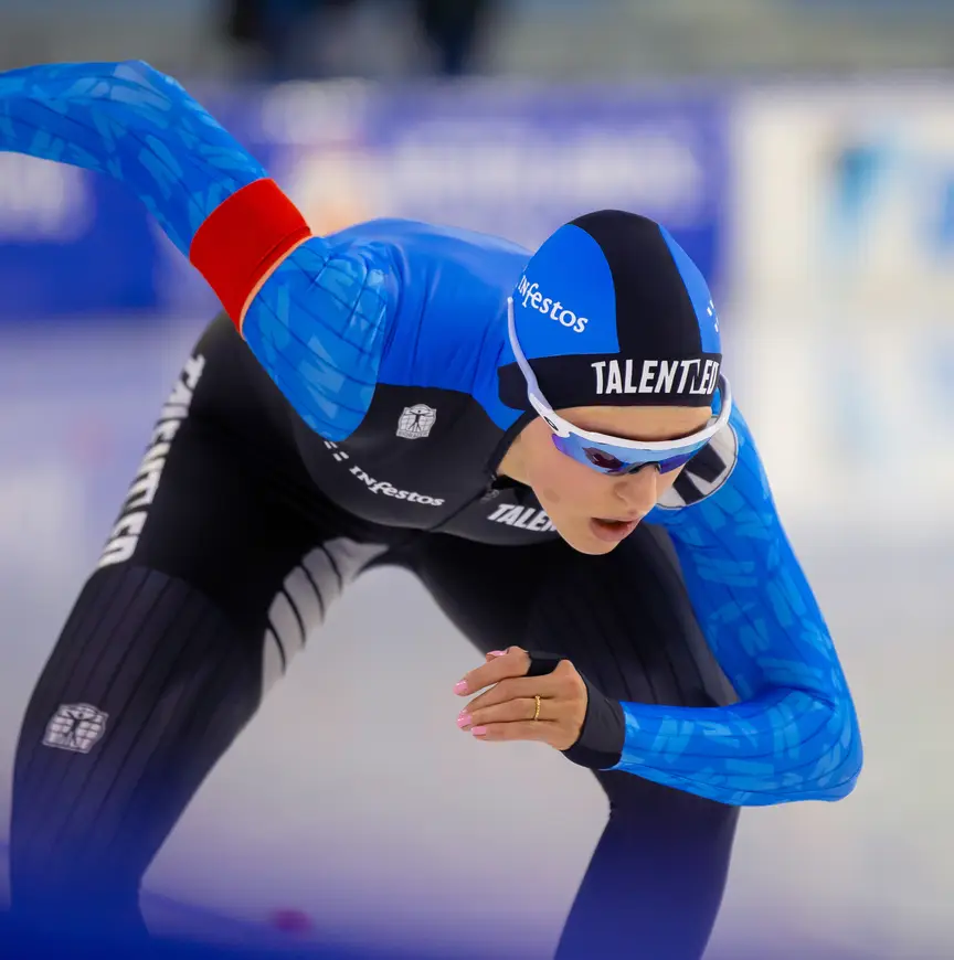 Met die gegevens lijkt het er op dat Veen een typische rijdster voor de middellange afstanden is. Dat ze dit weekend ook het kampioenschapsrecord op de 3000 aanscherpte, verbaasde haar dan ook enigszins. “Die afstand was voor mij een toetje na de drie eerdere overwinningen. Ik wilde vooral lekker rijden. Ik wist wel dat ik podiumkansen had, maar ik win hem ook met vier seconden verschil. Dat het een sweep is, is echt bizar.”