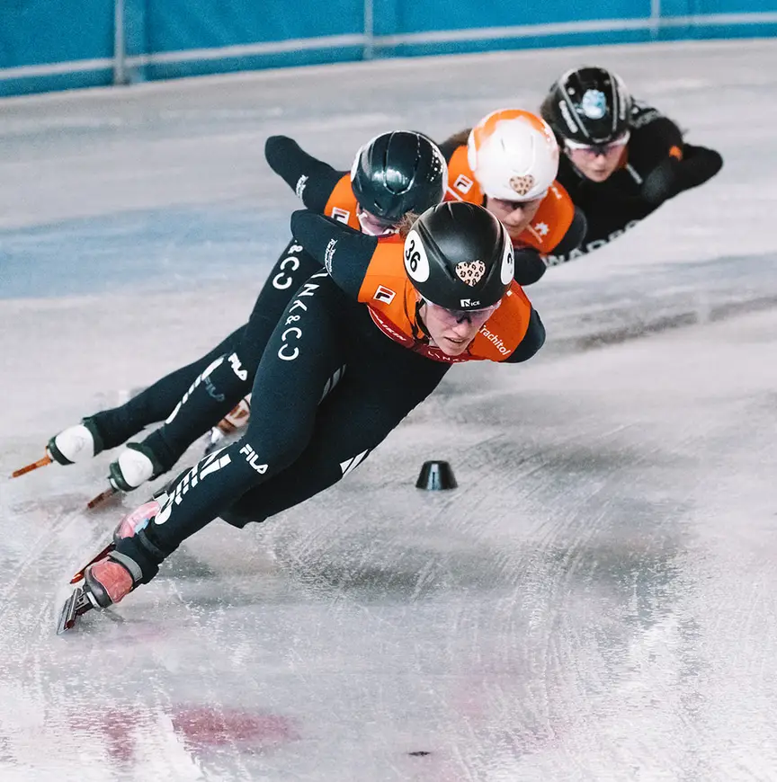 Aan het einde van afgelopen winter werd Anne Floor gebeld door de disciplinemanager, Wilf O’Reilly. “Hij zei: ‘ik mag je uitnodigen voor ShorttrackTeamNL.’ Ik was heel blij en belde gelijk mijn vader. Pap, ik zit erbij! ‘Ja, weet ik’, was zijn reactie. Dat had hij wel wat eerder mogen vertellen…,” vertelt Anne Floor Otter lachend, die de overstap maakte van WADRO RTC Noord.” Mijn ouders wisten het allang. Ze waren ook erg blij voor mij, het voelde alleen gek dat zij het eerder wisten dan ik.”