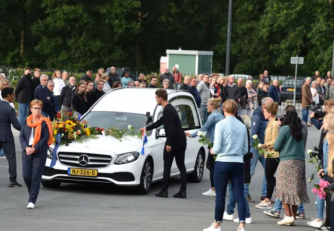 Buiten vormen honderden mensen een erehaag om een laatste groet te brengen aan de 27-jarige shorttrackster. Onder hen ook veel langebaanschaatsers met een witte roos in hun handen, die zorgvuldig op de motorkap van de auto wordt neergelegd. Ook Jorien ter Mors neemt afscheid van haar oud-ploeggenote en barst in snikken uit bij het passeren van de auto. Op de Olympische Spelen in 2018 pakte Ter Mors samen met Suzanne Schulting, Yara van Kerkhof en Van Ruijven een bronzen medaille op de relay, na die knotsgekke finale.