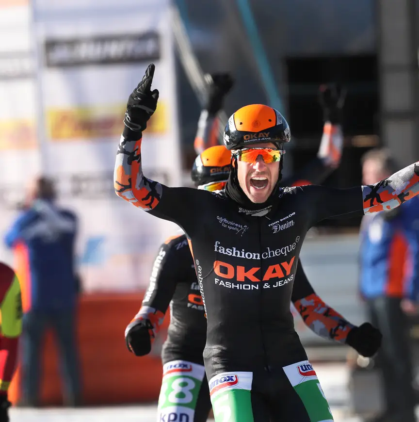 Het was het curieuze slot van een ONK dat niet de boeken in zal gaan als de meest spectaculaire editie. Dat viel eerlijk gezegd ook niet te verwachten. Op de Weissensee waren de omstandigheden werkelijk ideaal. Een fel zonnetje aan een strakblauwe hemel, geen wind en prima ijs. Dan is het over honderd kilometer bijna wachten op een sprint.