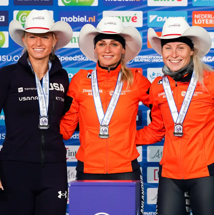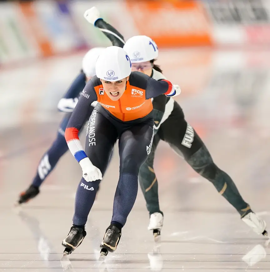Mia Manganello-Kilburg – die in november een uitstapje maakte naar de marathon - mengde zich in het gevecht en troefde Blondin en Groenewoud af. Irene Schouten bleek wel een maatje te groot. Na solo over de finish te komen in Heerenveen, won ze in het hol van de leeuw de massasprint. Voor Ivanie Blondin eindigde de dag in mineur, want haar bronzen medaille werd haar afgenomen.