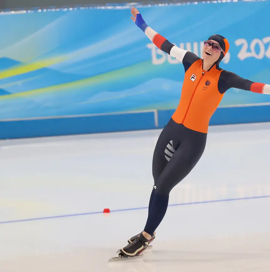 Schouten, die zaterdag al goud won op de 3000 meter, mocht in de laatste rit starten en wist dat ze sneller moest dan de 6.48,18 van Weidemann. Weer reed de 29-jarige Noord-Hollandse tegen Francesca Lollobrigida. Zoals verwacht ging de Italiaanse hard van start. Schouten kon mee in het tempo en snelde na vier rondjes Lollobrigida voorbij. Per ronde nam ze vervolgens steeds meer afstand van de tussentijden van Weidemann en snelde uiteindelijk naar een olympisch én Nederlands record.