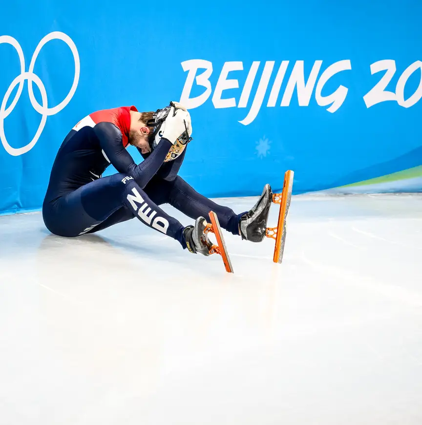 “Ik heb ook met mensen getelefoneerd. Met de bondscoach. Met de mental-coach die me begeleidt. Niels Kerstholt (oud-atleet, red.) belde me dezelfde avond al. Die heeft iets soortgelijks meegemaakt in Sotsji 2014: een val in de finale van de aflossing. Al was dat misschien voor hen nog harder dan voor mij nu, het voelde voor mij hetzelfde, denk ik. We hebben zoveel gewonnen op de relay, waren er zo dichtbij. En dan weer niet…”