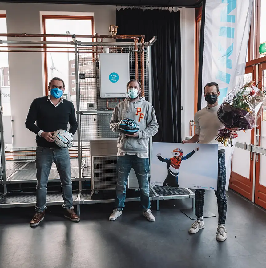De directeuren Edwin Hoogerwerf (Daikin) en Robin van der Kaa (Lynk & Co) toonden zich aangenaam verrast met dit cadeau uit handen van een kersverse kampioen. De helmen krijgen een prominent plaatsje op de kantoren van Daikin en Lynk & Co.