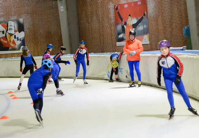 Wat hebben Michel Mulder, Lotte van Beek, Carlijn Achtereekte en Thomas Krol met elkaar gemeen? De olympisch kampioenen leerden alle vier bochtjes rijden van Marijke Westerhof, sinds 1972 jeugdtrainster in Deventer. Hun levensgrote foto’s sieren de wanden van ijsbaan De Scheg, waar Marijke op deze doordeweekse avond weer een nieuwe groep pupillen (9 en 10 jaar oud) de kneepjes van het schaatsen bijbrengt.