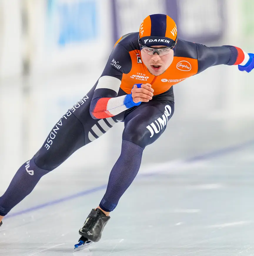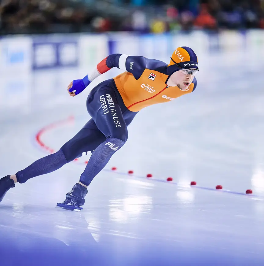 Voor de start van de 1000 meter waren alle ogen gericht op Jordan Stolz. De 18-jarige Amerikaan imponeerde vorig weekend in Stavanger, maar kon dat kunststukje in Thialf niet herhalen. Stolz gleed weg in de bocht en belandde hard in de kussens. “Ik voelde dat ik wegslipte en toen ging ik onderuit”, was zijn nuchtere commentaar na afloop. “Dit overkomt me niet vaak, ik kan me niet herinneren wanneer ik voor het laatst ben gevallen. Gelukkig ben ik ongedeerd.” Stolz wilde niks weten van druk, die hem van tevoren door velen werd opgelegd. “Het heeft mijn race in elk geval niet beïnvloed.”