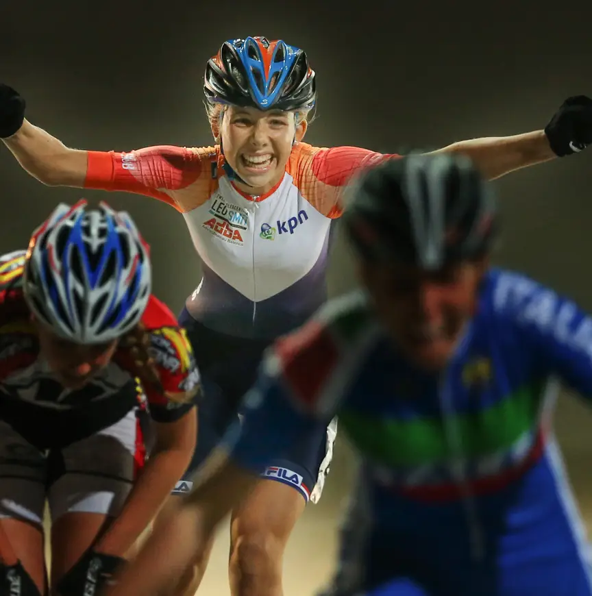 Ondanks haar geringe EK-ervaring leken zenuwen de 14-jarige geen parten te spelen. "Ik wilde vroeger nooit een wedstrijd rijden hoor", lacht ze. "Daar was ik veel te zenuwachtig voor." Toch lijkt ze dat probleem inmiddels achter zich te hebben gelaten. "Op de driehonderd meter lukte dat wel, maar voor de afvalkoers was ik best wel zenuwachtig", vervolgt ze. "Ik wist niet wat ik moest verwachten, want ik heb nooit tegen deze meiden gereden. Het was best wel eng, maar als je eenmaal gestart bent gaat het een stuk beter."