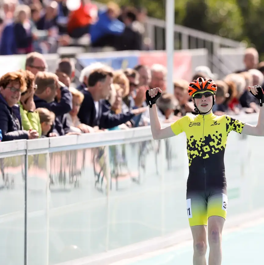 Misschien wel de bijzonderste afstand van het weekend was de 500 meter. De volledige finale werd gevuld met de gele outfits van SkateUnited, het opleidingsteam van RTC Midden. Naast Groot veroverden ook Pelle Bolsius, Nick Bontrop en Asif Muhammad een plekje in de eindstrijd. Ook naar zijn teamgenoten was Groot onverbiddelijk: al vroeg in de race rijdt hij weg, waarna hij met grote voorsprong over de streep komt.