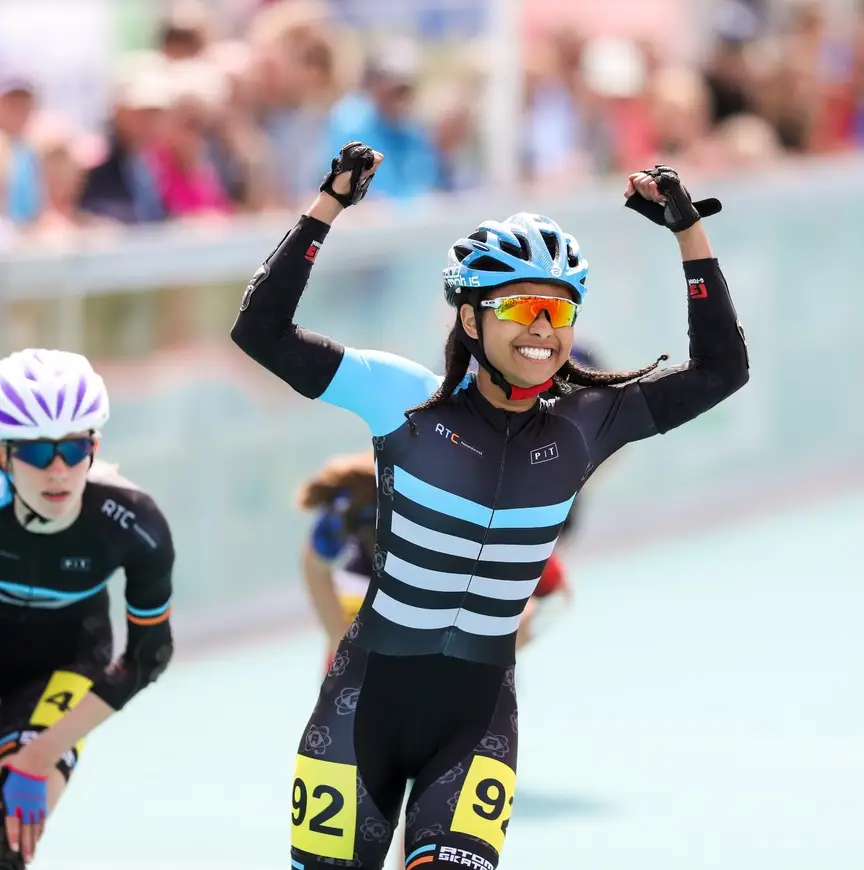"Het was best wel eng", vertelt ze ietwat onwennig. "Ik reed de hele tijd als tweede, maar op het laatste rechte stuk ging ik bijna onderuit. Ik wilde te graag denk ik." De analyse van de sprintster is in ieder geval scherp. En ondanks dat het laatste stuk niet helemaal goed ging, stipt ze juist dat stuk wel aan als haar sterkste punt.