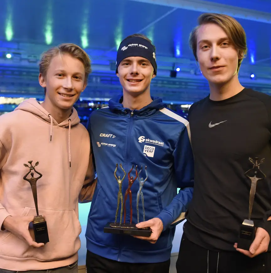 De junioren werden afgelopen weekend in Thialf verrast met een huldiging. Uit handen van Remy de Wit, technisch directeur van de KNSB, kregen zij een mooie sculptuur overhandigd. "Bijzondere prestaties willen wij vaker in het zonnetje zetten, dit is daar een goed voorbeeld van", aldus De Wit. Vervolgens genoten de jongens samen met familie vanaf het TeamNL fan-deck van de wedstrijden tijdens het World Cup kwalificatietoernooi. Van Workum en De Wit kwamen zelf nog in actie de 1500 meter.