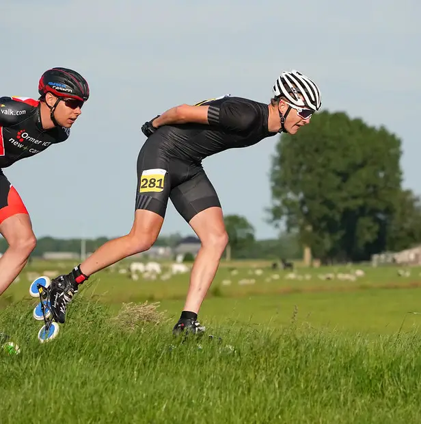 “Dat klopt. Ik zie het wel als goede training voor het marathonseizoen. Zolang ik moe word van de wedstrijden, heb ik een prikkel gehad. Alleen, ik heb deze zomer niet het grootste plezier kunnen halen uit het skeeleren, omdat winnen er niet inzat. Ik moet zeggen: in Boxmeer vorige week had ik voor de eerste keer een kans op de zege – ik zat vooraan met twee Jumbo’s en Crispijn Ariëns van Reggeborgh, totdat er in de slotronde een motard me in de weg reed – verder heb ik in de tang gezeten dit seizoen."