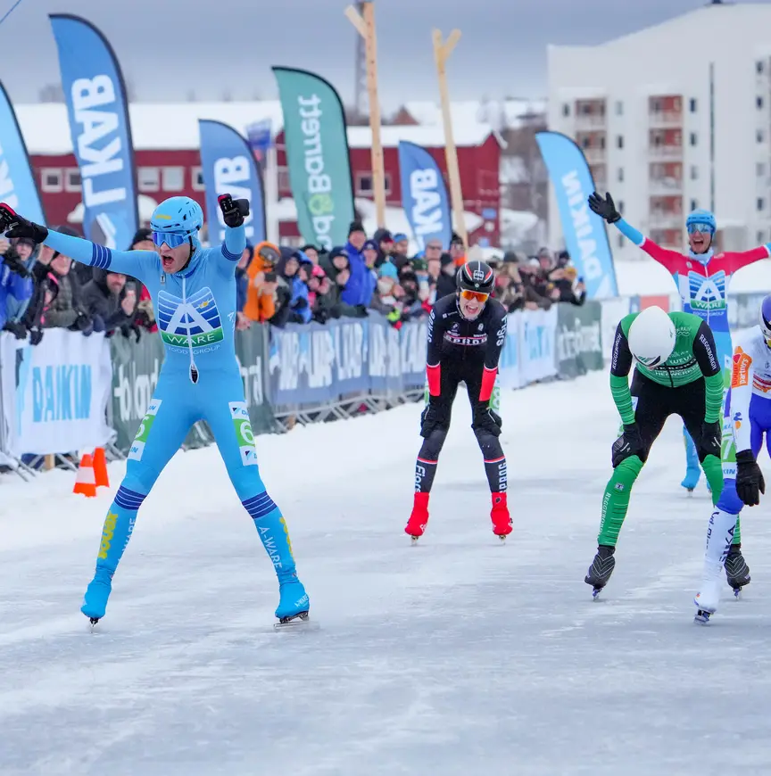 De eerste rit op de massieve ijsvloer van de Botnische golf blijft ver weg van een tactisch spel vol van herhalingszetten. Het is knallen van quitte af aan, een kwestie van elkaar slopen zodra het startschot klinkt. “Superzwaar”, zal Harink naderhand zeggen in de eetzaal van het hotel, waar de gehele ploeg een uurtje na afloop de energievoorraad weer aanvult en nageniet van het perfecte resultaat. “Een echte teamoverwinning”, aldus de afmaker, die via de sprint Luc ter Haar en Crispijn Ariëns als eerste belagers naar de ereplaatsen heeft verwezen.