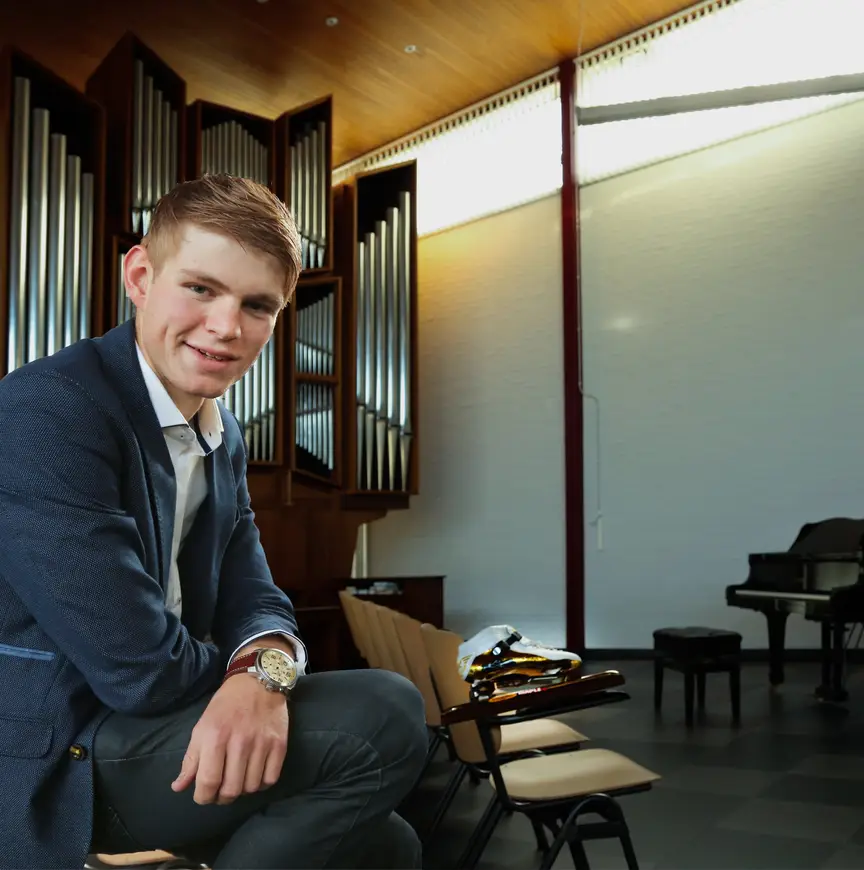 “Voor mij gaan sport en geloof prima samen, al denk ik dat er veel mensen in Rouveen zijn die vinden van niet. Als mensen uit de buurt me op mijn fiets weg zien gaan op zondag, denken ze misschien: hij is van God los. Maar dat is niet zo. Ik groei meer naar God toe als ik op zondag door de natuur fiets, dan als ik verveeld op de bank zit. Ik heb niet elke zondag een kerkdienst nodig; mijn ouders hebben daar wel behoefte aan. In een klein dorp als Rouveen is de sociale control groot en vinden mensen het erg belangrijk hoe anderen over hen denken, belangrijker dan hoe ze zelf met God bezig zijn. Ik denk andersom; als ik zelf maar met God bezig ben. Mijn ouders vinden het geen probleem dat ik het geloof op mijn eigen manier invul. Ik doe het op mijn manier mét God.”