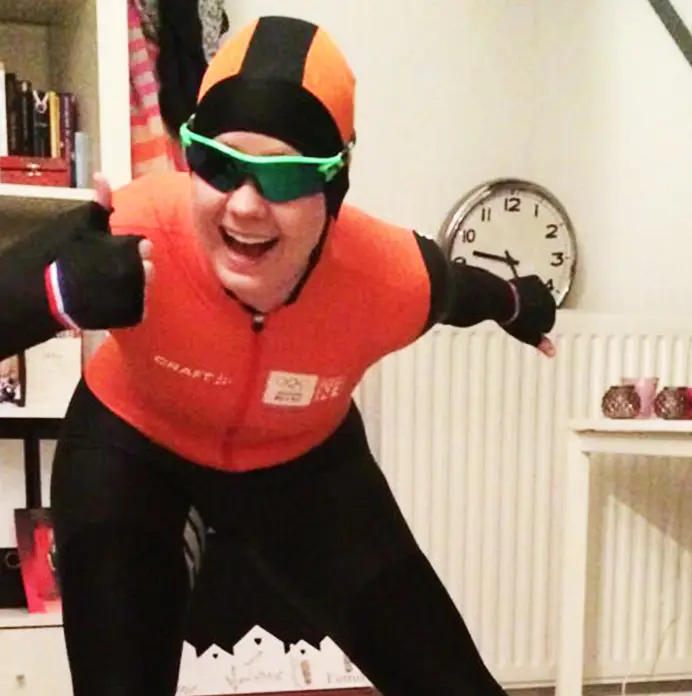En ja, dan hebben we het over Jorien ter Mors, olympisch kampioene van Sotsji en deelnemer op de langebaan en shorttrack in Gangneung. Op bovenstaande foto is Jorieke te zien in het Sotsji-pak, waarin Ter Mors in 2014 goud haalde op de 1500 meter. "Die moest ik voor de grap aan, ha!"