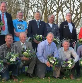 Voor hen was er ook een woord van dank en een aantal anekdotes uit de geschiedenis van de club. Uit handen van Wethouder Anton Westerkamp kregen de 14 aanwezige jubilarissen een prachtige zilveren skeeler opgespeld en van bestuurslid Rita IJzerman een mooie bos bloemen overhandigd.