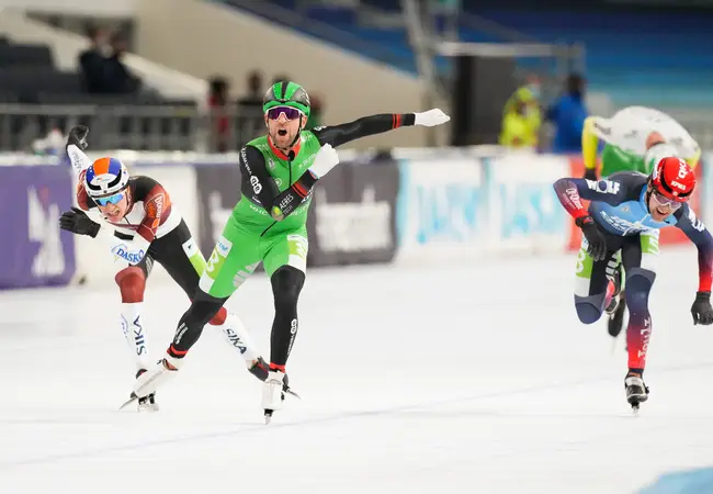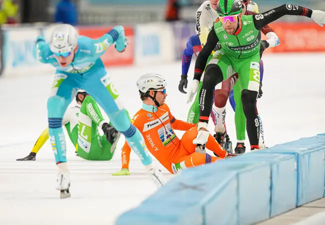 Gelling moest even een gaatje laten en kon de 32-jarige routinier niet meer passeren. Zelf was hij ook bijna slachtoffer geworden van de val. "Dat was wel schrikken", sprak de Groninger. "Ik ging zelf ook nog bijna onderuit. Het ging niet heel hard in de finale, dus het bleef chaotisch. Ik miste net de aansluiting met Janissen en Ariëns, maar ik kwam nog terug. Helaas was het net niet genoeg voor de winst." En wat er dan in het hoofd omgaat van een talentvolle marathonschaatser? "Dat ik had hem toch had willen winnen", klonk het lachend.