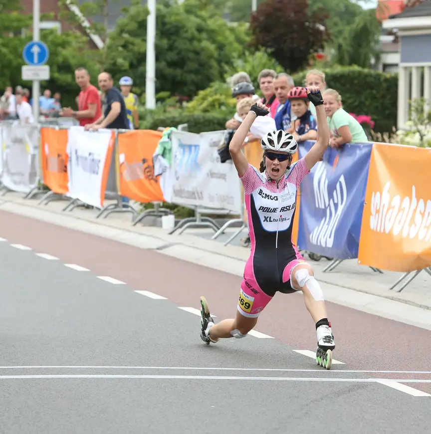"Een zware race, maar dit was mijn eerste overwinning op een marathon bij de senioren dames," stelde Sandrine Tas tevreden vast. De rijdster van Zwaantjes Roller Club uit Zandvoorde was vorig jaar tijdens het Europees kampioenschap in Almere op weg naar een onbepaald aantal Europese titels bij de junioren dames, toen ze ten val kwam en haar pols brak. Met de arm in het gips en één Europese titel moest Tas zich terugtrekken. "Daarom hoop ik dat dit jaar in Duitsland goed te kunnen maken," hoopt de atlete van XL Tulips/Powerslide.