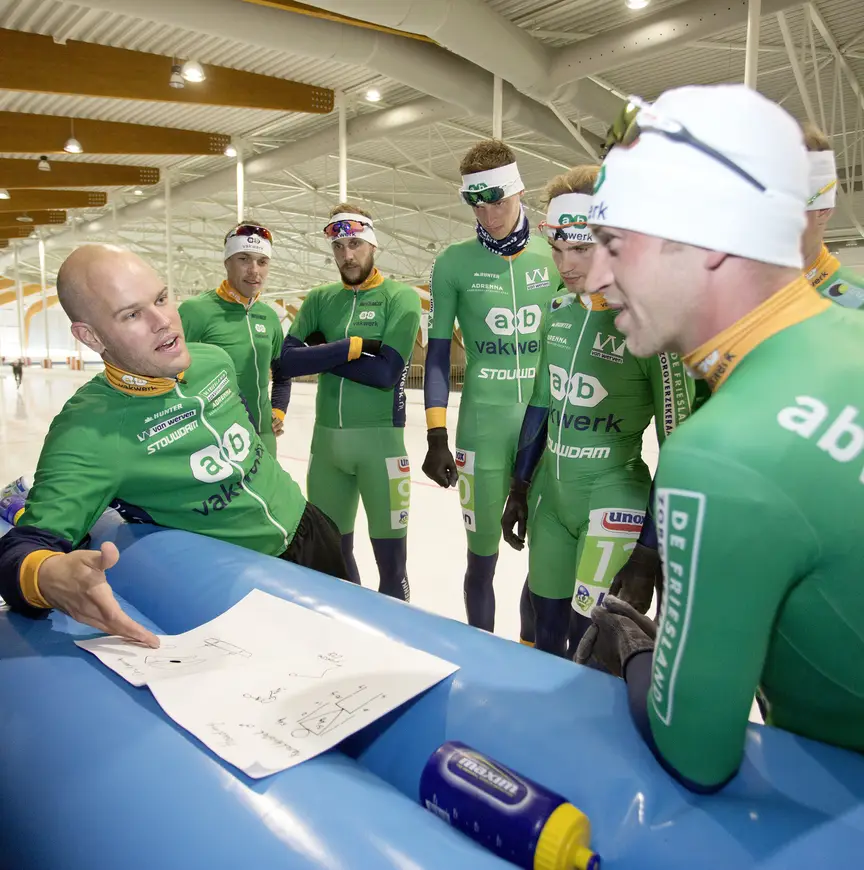 En ja, soms mag de knuppel in het hoenderhok. Zoals marathonschaatsers het graag hebben. Samen op de fiets of skeelers stappen en één voor één gesloopt weer thuis komen. "Dan stuurt Roy (Boeve, red.) de jongens na drie uur skeeleren toch nog een blokje om, omdat hij denkt dat ze dat op een dag nodig hebben. Dan zegt het schema linksaf, maar moet je rechtsaf gaan, omdat ze ook mentaal moeten groeien. Dan laat je de trainingsprikkel los en pak je de mentale component."