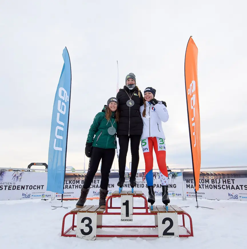 Voor Buurman betekent deze derde plek haar eerste podiumplaats in de Topdivisie. De rijdster van BTZ.nl kwam vorig seizoen uit in de Regiotop en stond toen iedere wedstrijd op het podium. "Het niveau in de Topdivisie is natuurlijk een stuk hoger. Ik ben ontzettend blij met mijn eerste podiumplek", glundert Buurman, terwijl ze de ijzige medaille nader bekijkt. "Straks smelt 'ie", grapt ze tegen teamgenote Van den Bos, die vroegtijdig moest uitstappen door materiaalpech.